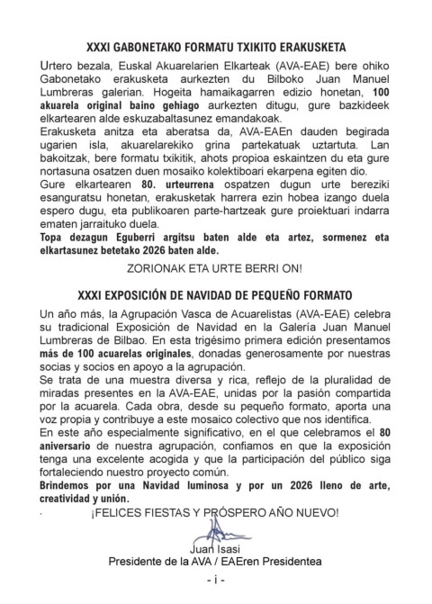 Urtero bezala, Euskal Akuarelarien Elkarteak (AVAEAE) bere ohiko